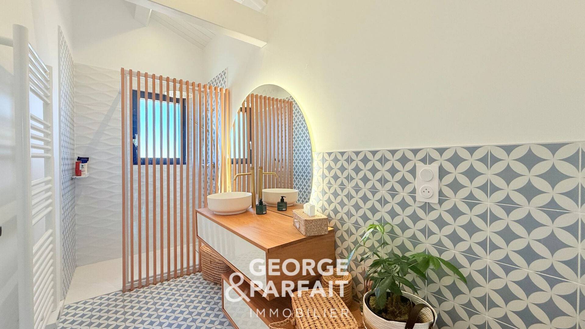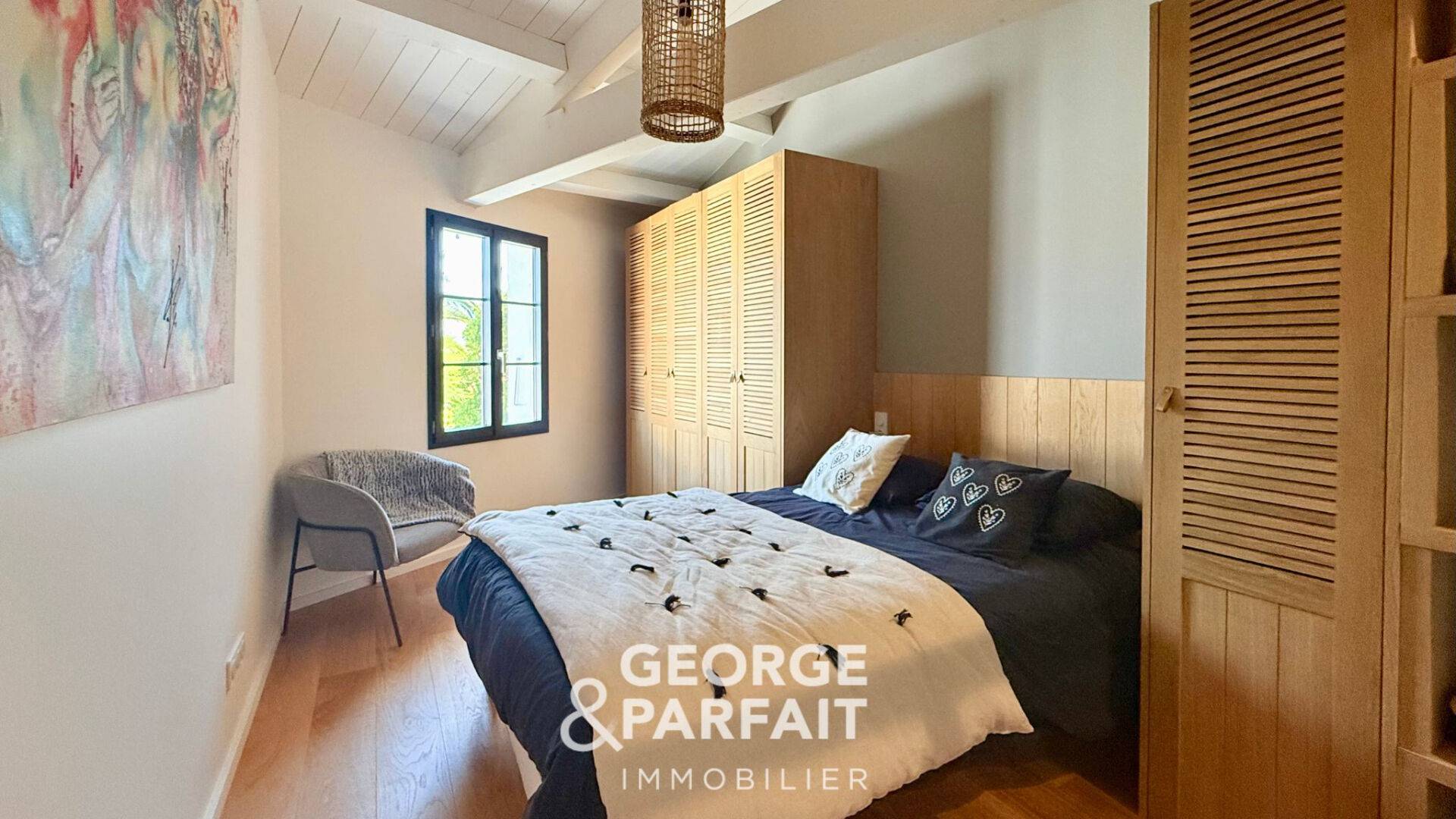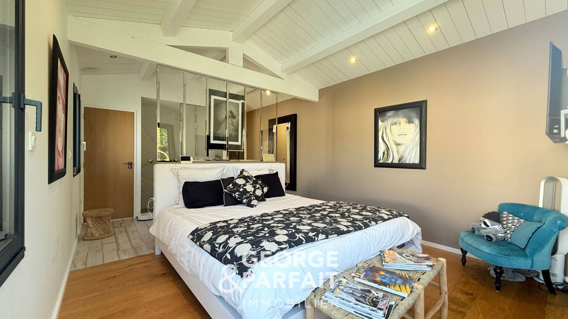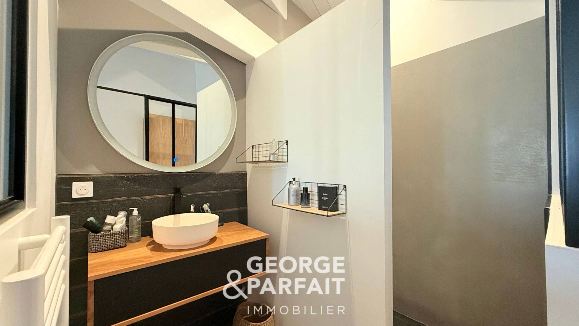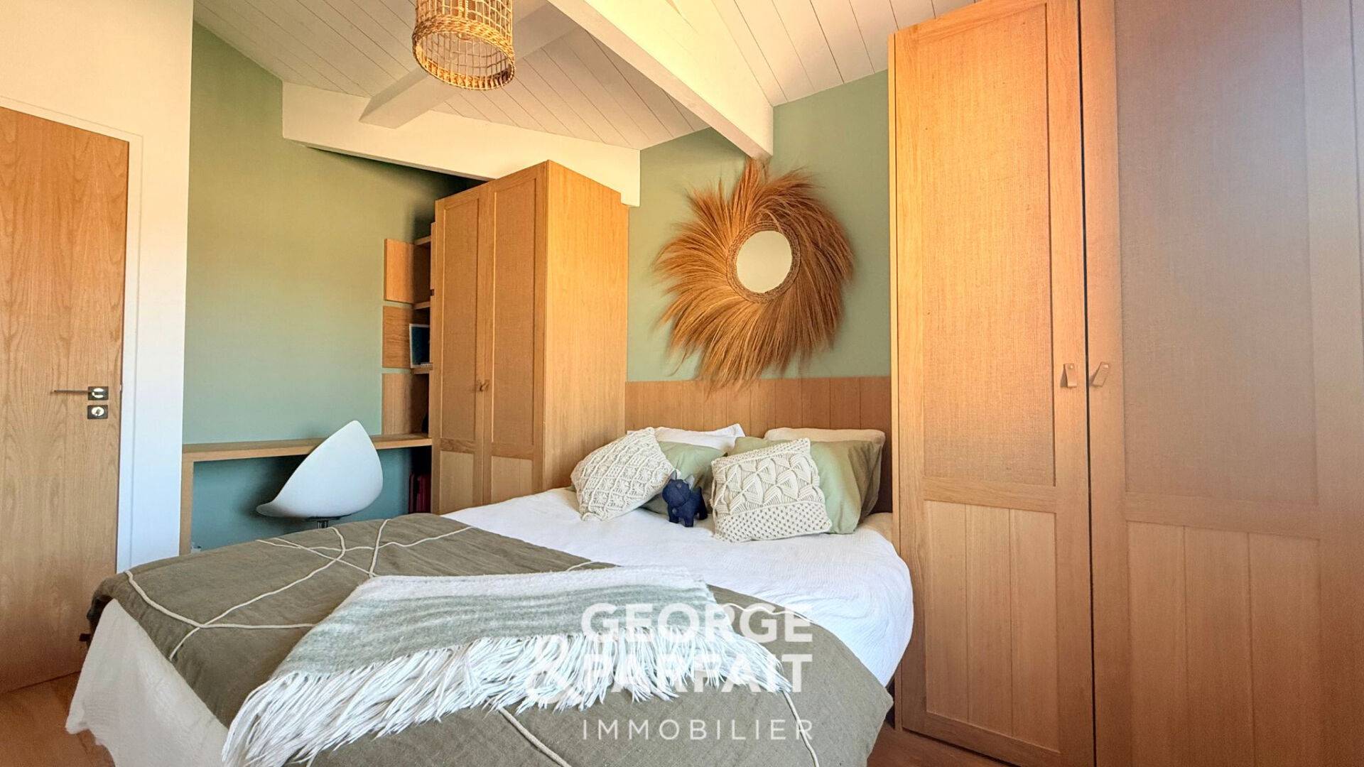 L'étage est composé de deux chambres profitant chacune d'un dressing et d'une salle d'eau privative, un grand bureau pouvant être aménagé en salle de sport ou en chambre et un WC.