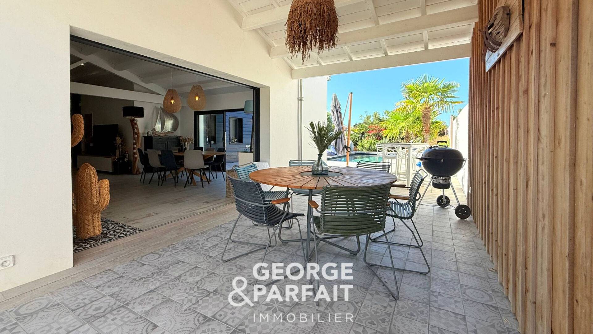 Cette villa vous propose également un joli jardin paysagé et arboré, une piscine, un préau, un double garage et deux places de stationnement.