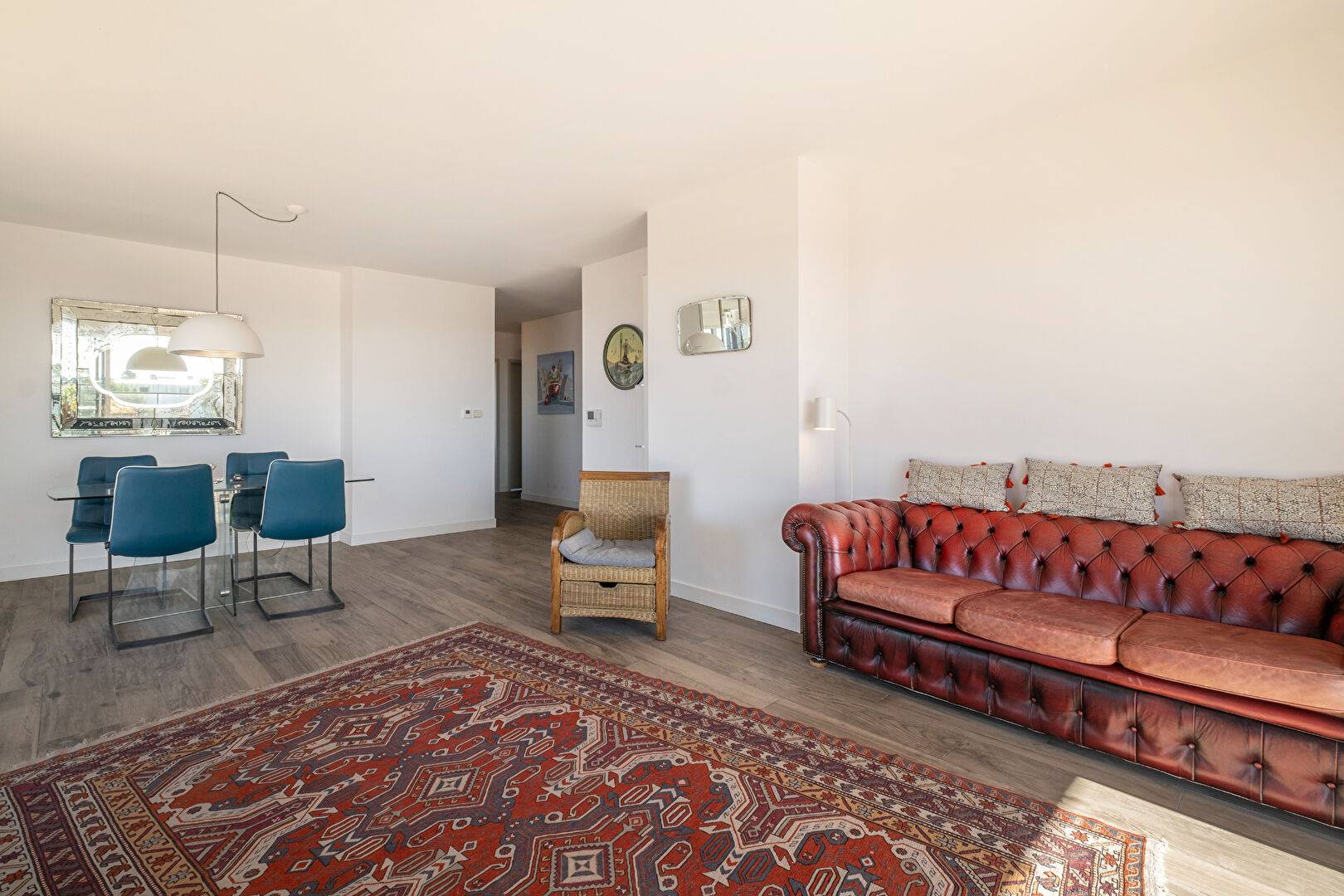 L'appartement d'une surface habitable de 105 m² se compose d'un beau séjour lumineux avec deux grandes baies vitrées donnant sur une terrasse panoramique de 54 m² avec une vue exceptionnelle exposée S/O.