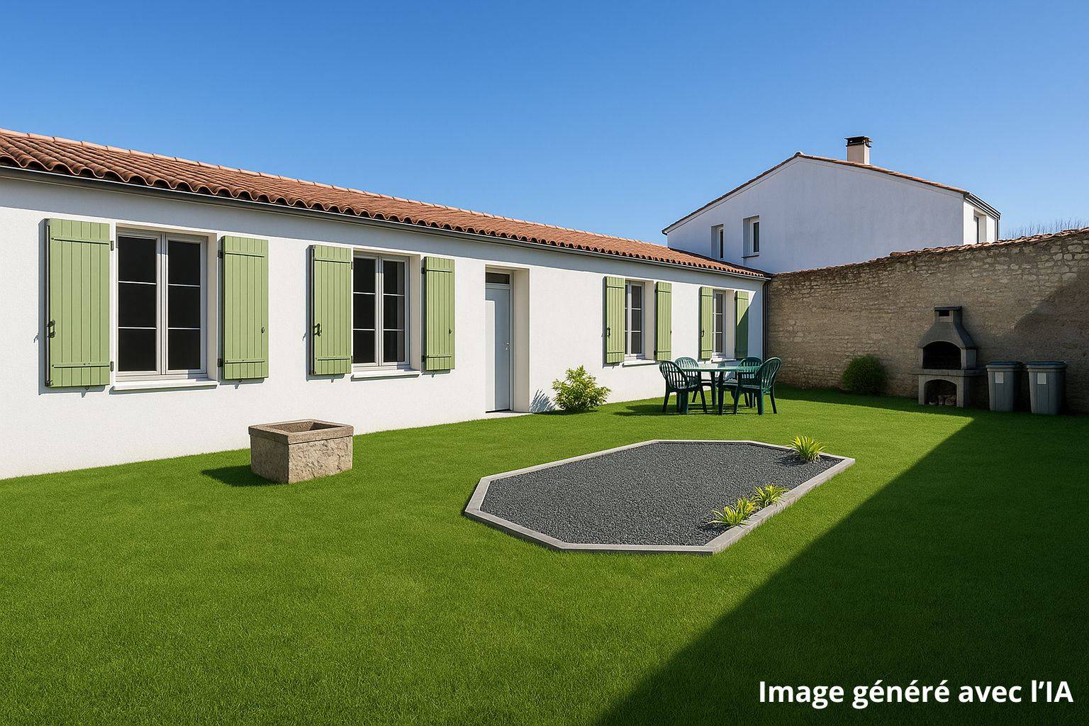 La première maison d'environ 96m² comprend une entrée avec placards, une grande pièce de vie de 52m², 3 chambres et une salle d'eau.