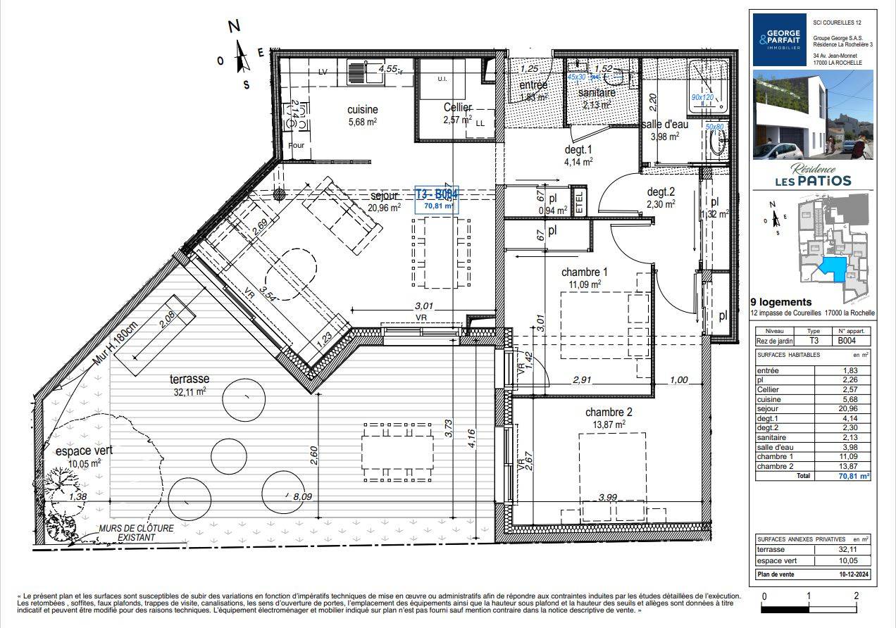 Résidence avec ascenseur, composée uniquement de 9 logements avec de grandes terrasses et jardins, la résidence Les Patios propose un large choix d'appartements allant du T2 au T4.