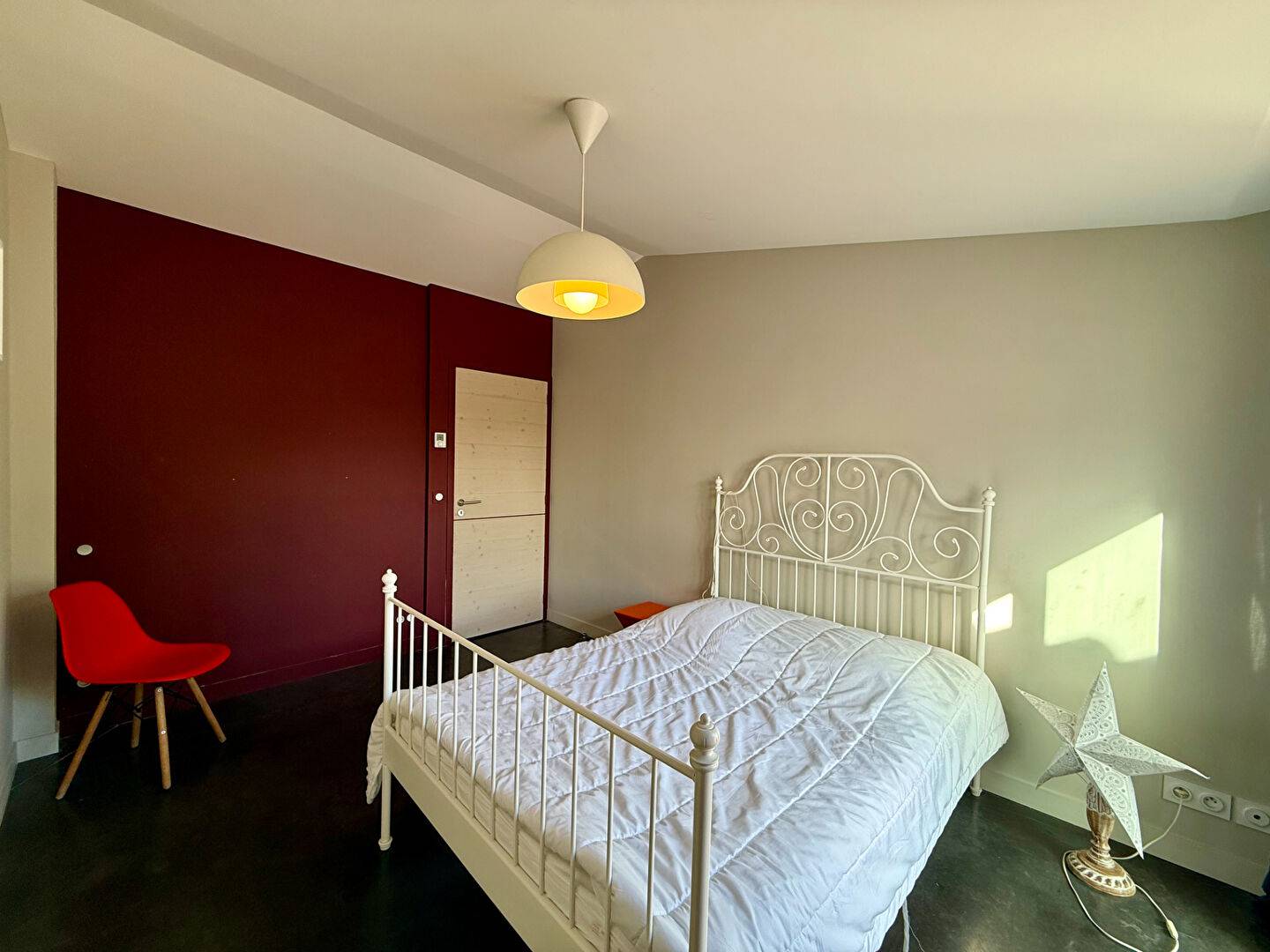 La partie principale se compose d'une entrée avec placard, d'un lumineux salon séjour agrémenté d'un poêle à bois, d'une cuisine aménagée et équipée, de deux chambres, d'une salle d'eau ainsi que d'une suite parentale avec salle d'eau privative.