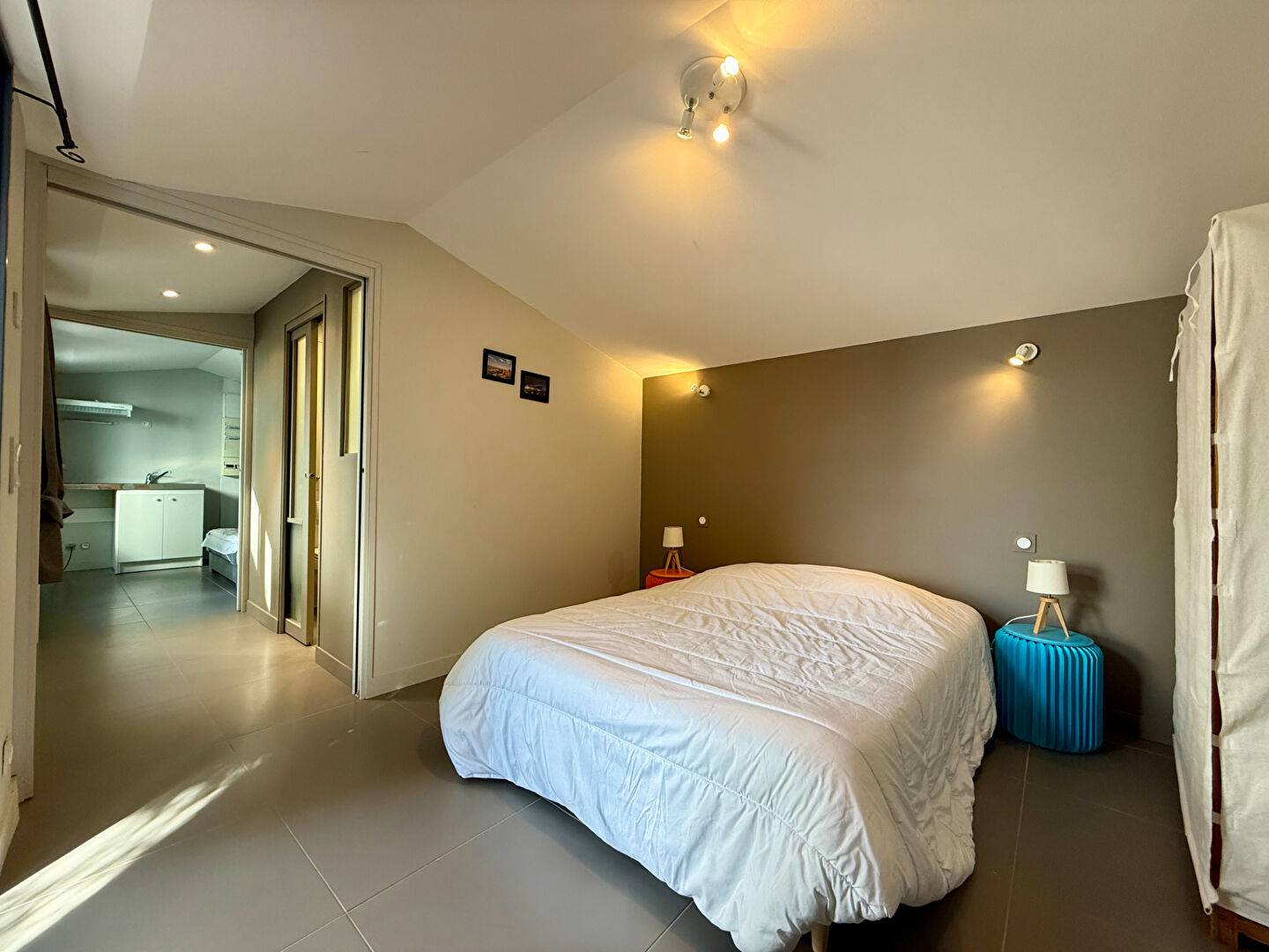 Une troisième unité, elle aussi indépendante, comprend un espace salon avec kitchenette, une chambre et une salle de bains.
