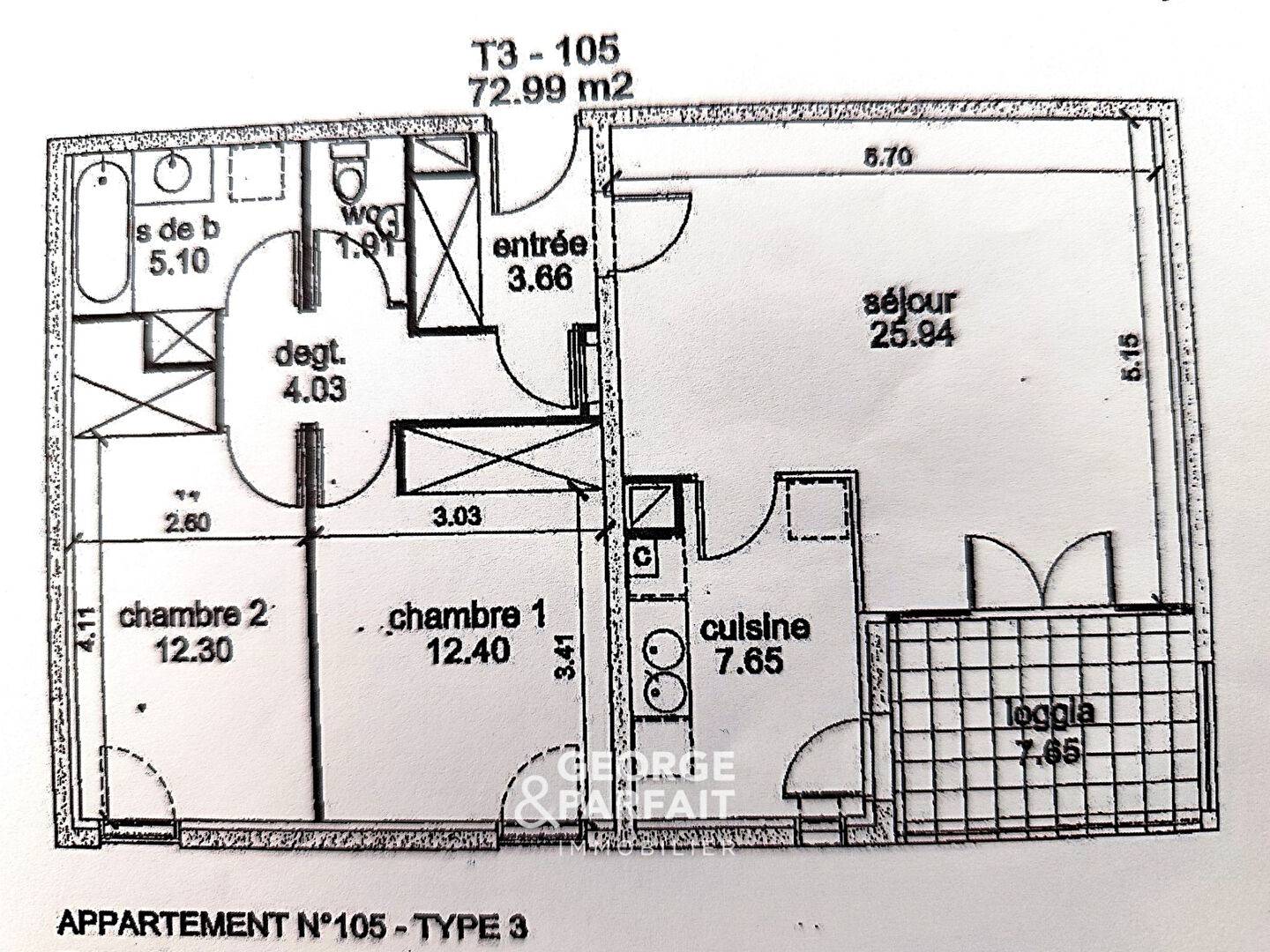 George et Parfait vous propose, à proximité immédiate du Lac de la Sole et des Universités, proche des transports, commerces et services, nous vous proposons un agréable appartement T3 de 73 m² lumineux comprenant : Entrée avec rangements, beau séjour-salon donnant sur sa loggia exposée Ouest, cuisine semi-ouverte , deux belles chambres avec rangements, salle de bains, wc séparé.