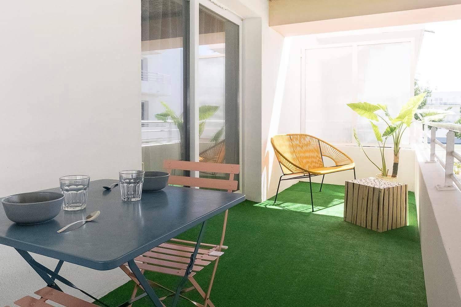 Les Minimes, proche plage, port de plaisance, facultés et commerces, dans résidence sécurisée avec ascenseur et piscine, beau studio meublé de 22 m² comprenant : entrée avec placard, séjour, cuisine, salle d'eau, WC, terrasse 9 m²,