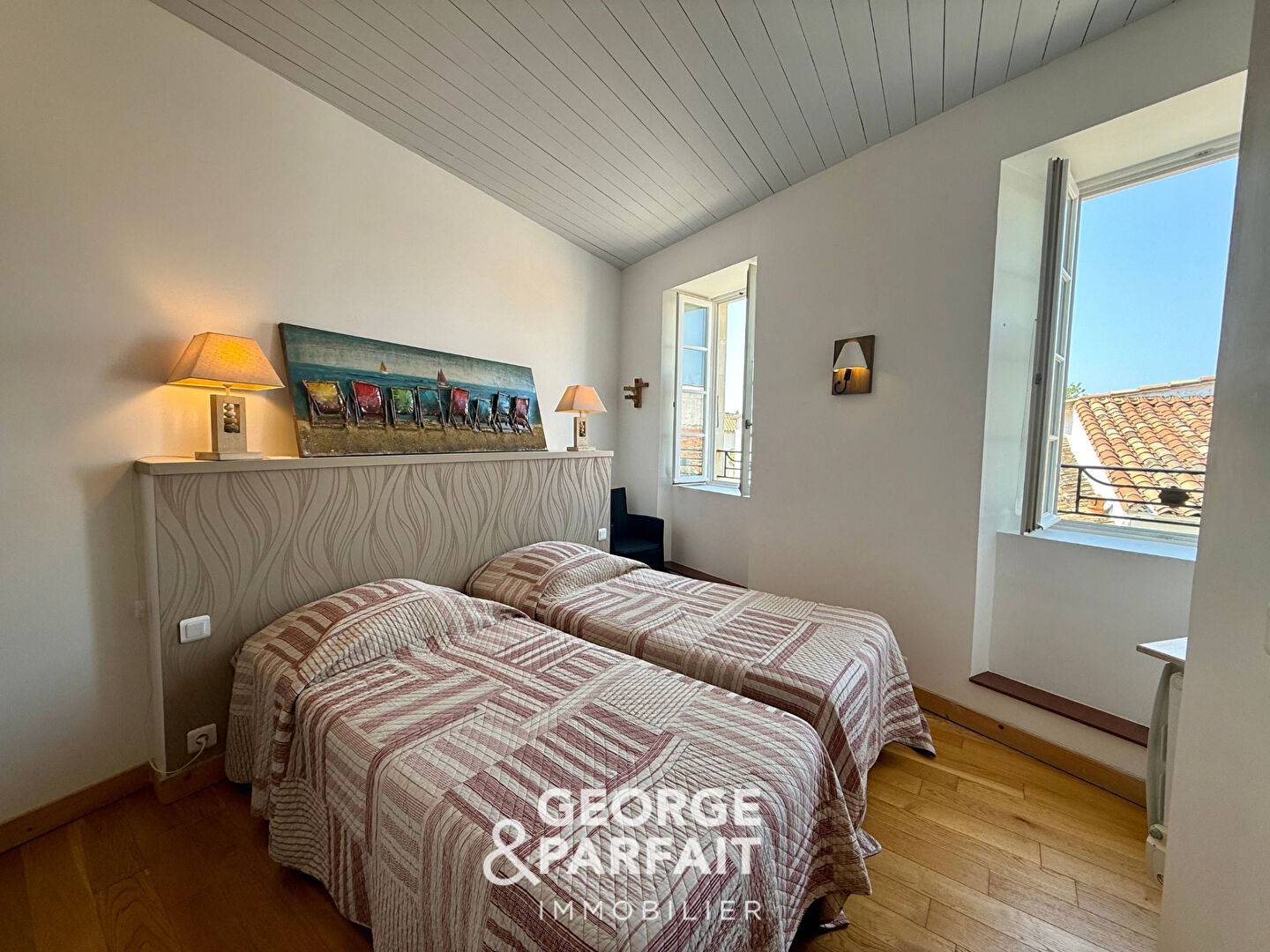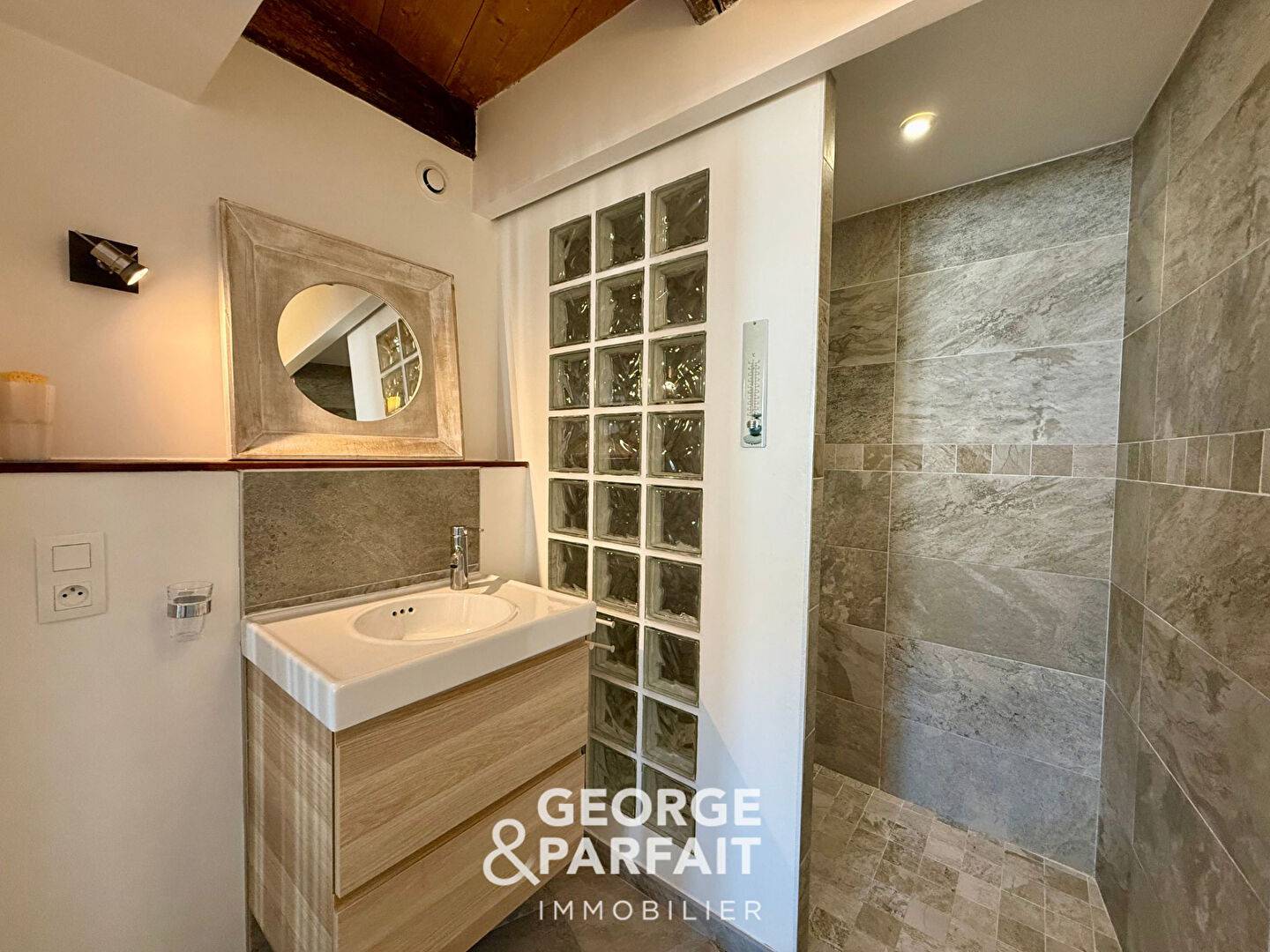 A l'étage, un palier dessert 2 chambres avec salles d'eau et placards. (3.95 % honoraires TTC à la charge de l'acquéreur.)