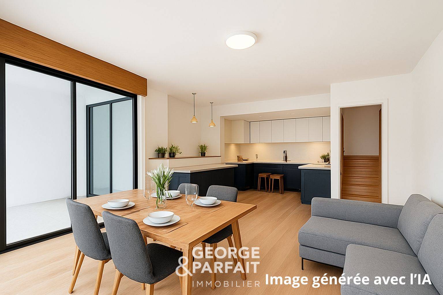 Le rez-de-chaussée comprend une entrée, un salon-séjour ouvert sur une cuisine.