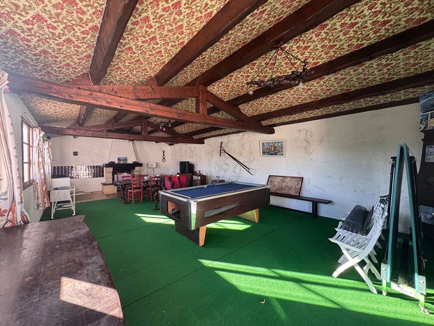 A l'extérieur, la propriété dispose d'un hangar et d'un préau. A l'étage du hangar, une salle de jeux avec cheminée apporte un espace supplémentaire.