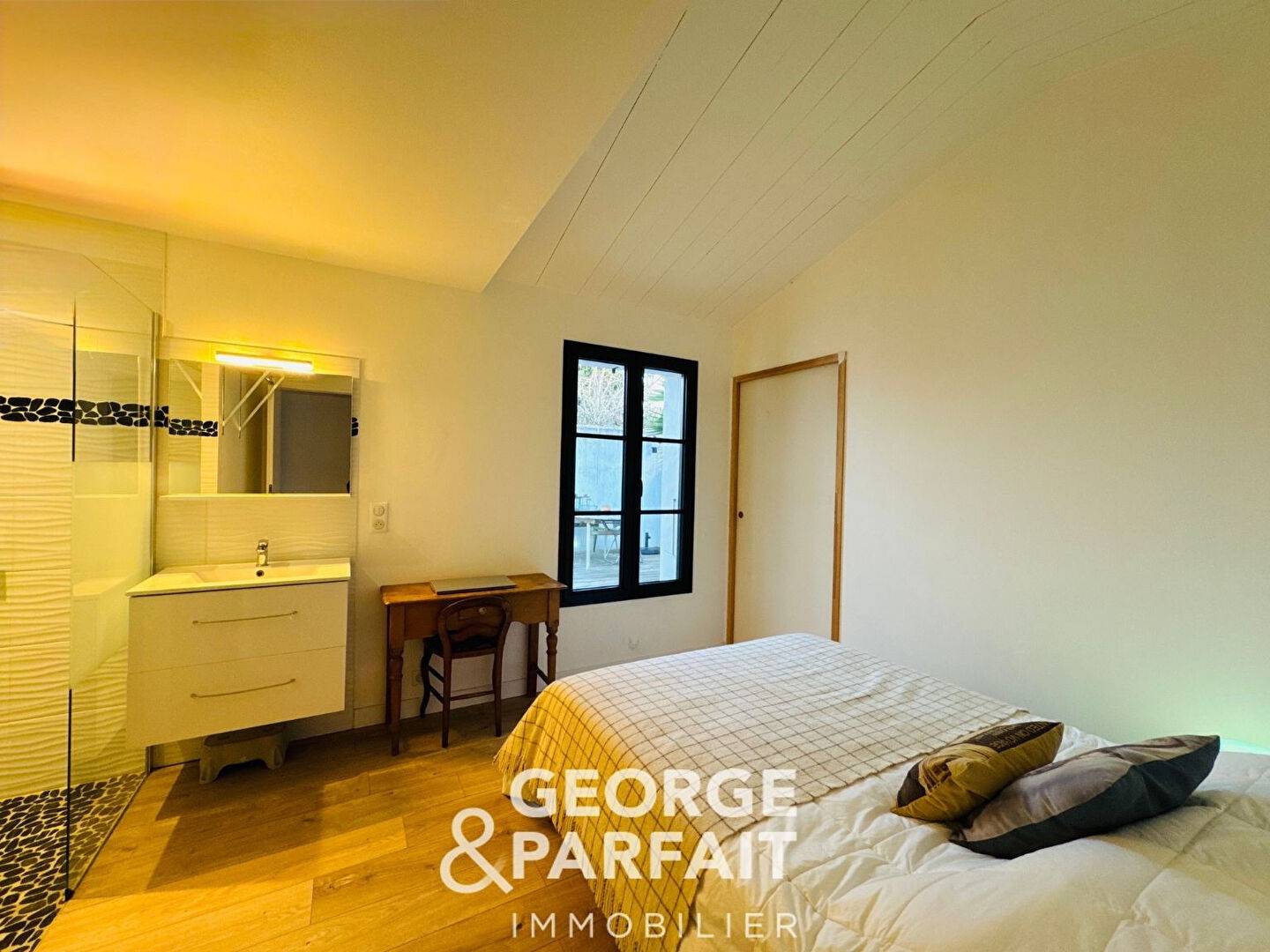 A l'extérieur, vous profiterez d'une terrasse bois, d'un patio avec murs en moellons ainsi qu'un auvent pouvant abriter un véhicule. (4.47 % honoraires TTC à la charge de l'acquéreur.)