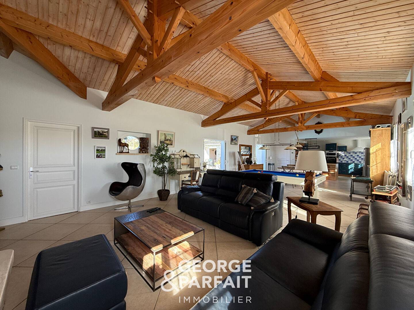 Dans la partie principale vous retrouverez un pièce de vie d'environ 80m² composée d'un salon avec cheminée, salle à manger et cuisine ouverte aménagée et équipée, l'espace nuit se compose de 3 chambres et 2 salles d'eau.