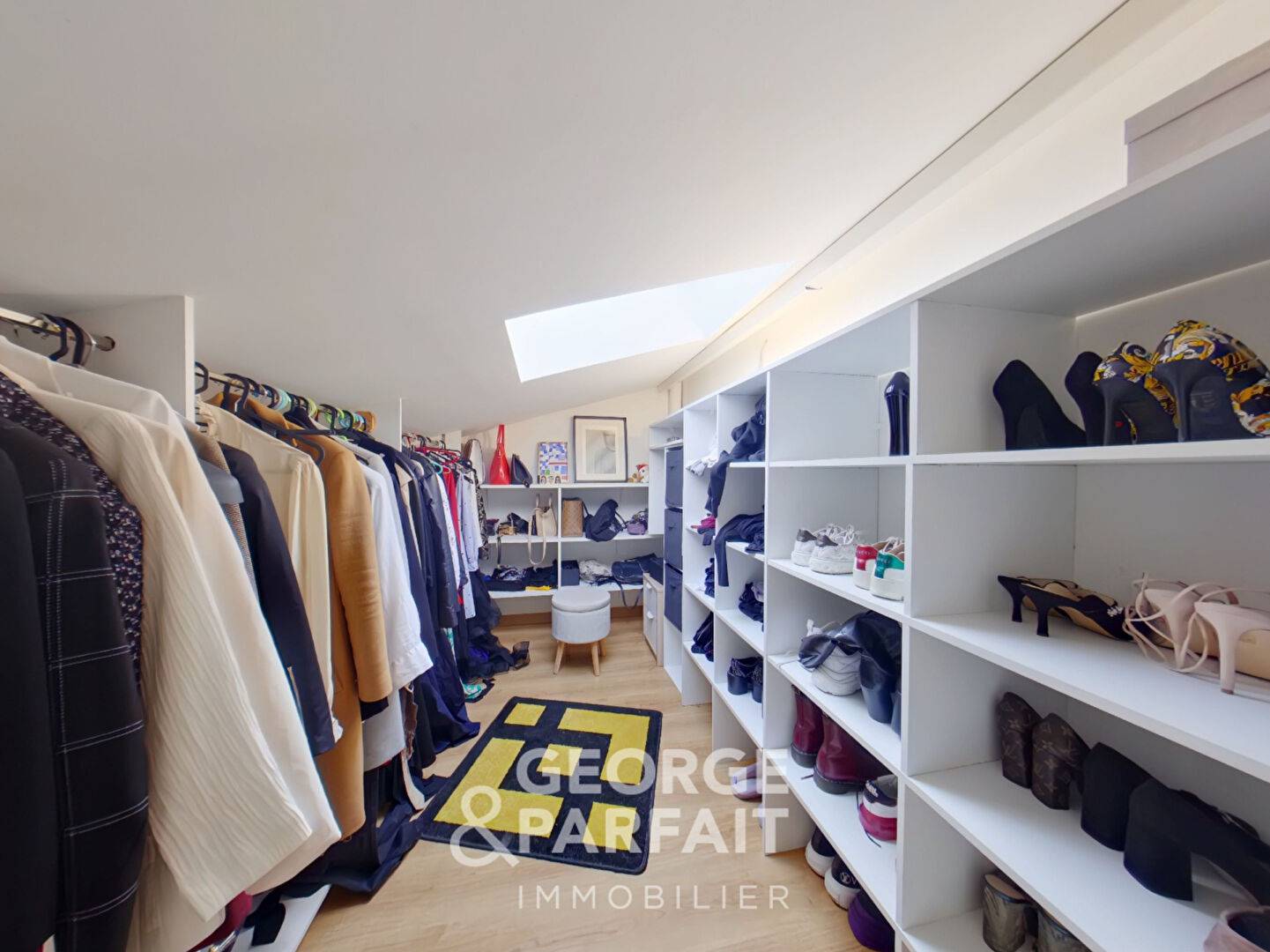 Un jardin paysagé avec piscine, garage, pool house viennent compléter cette maison bâtie sur une parcelle de 540m², un agrandissement est possible.