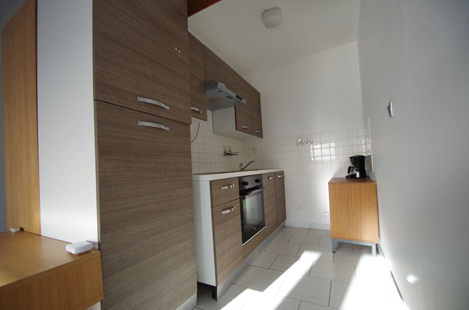 Vue mer pour cet appartement situé au dernier étage d'une résidence atypique, d'une superficie de 30 m² au sol, composé d'une pièce principale, coin cuisine aménagée, salle d'eau-wc.