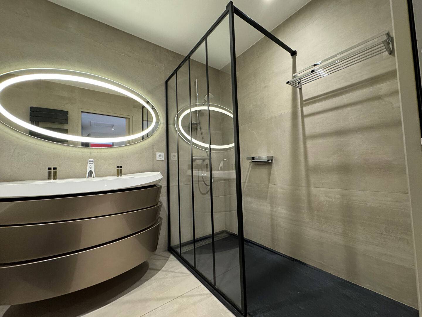 Maison de standing, d'une superficie de 120 m² en excellent état ayant son entrée indépendante par une cour d'accueil, prestations haut de gamme, grande pièce de vie lumineuse, deux chambres, salle de bains, wc. Belle terrasse sans vis-à-vis de 62 m² avec jacuzzi, pergola bioclimatique. climatisation